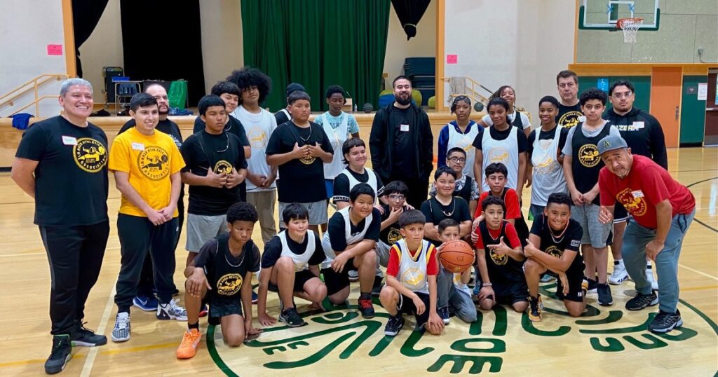 The La Raza Athletic Association (LRAA) league was born from a game of five-on-five among Cal students from Casa Juaquin Murrieta/Chicano Student Co-op and friends from East Oakland. The league was formally established in East Oakland in the fall of 1971. The need for an athletic league for Raza (Latinos) by Raza began to take shape. The birthplace was an old gym at one of the first alternative schools in the nation, “Casa De La Raza School.”
